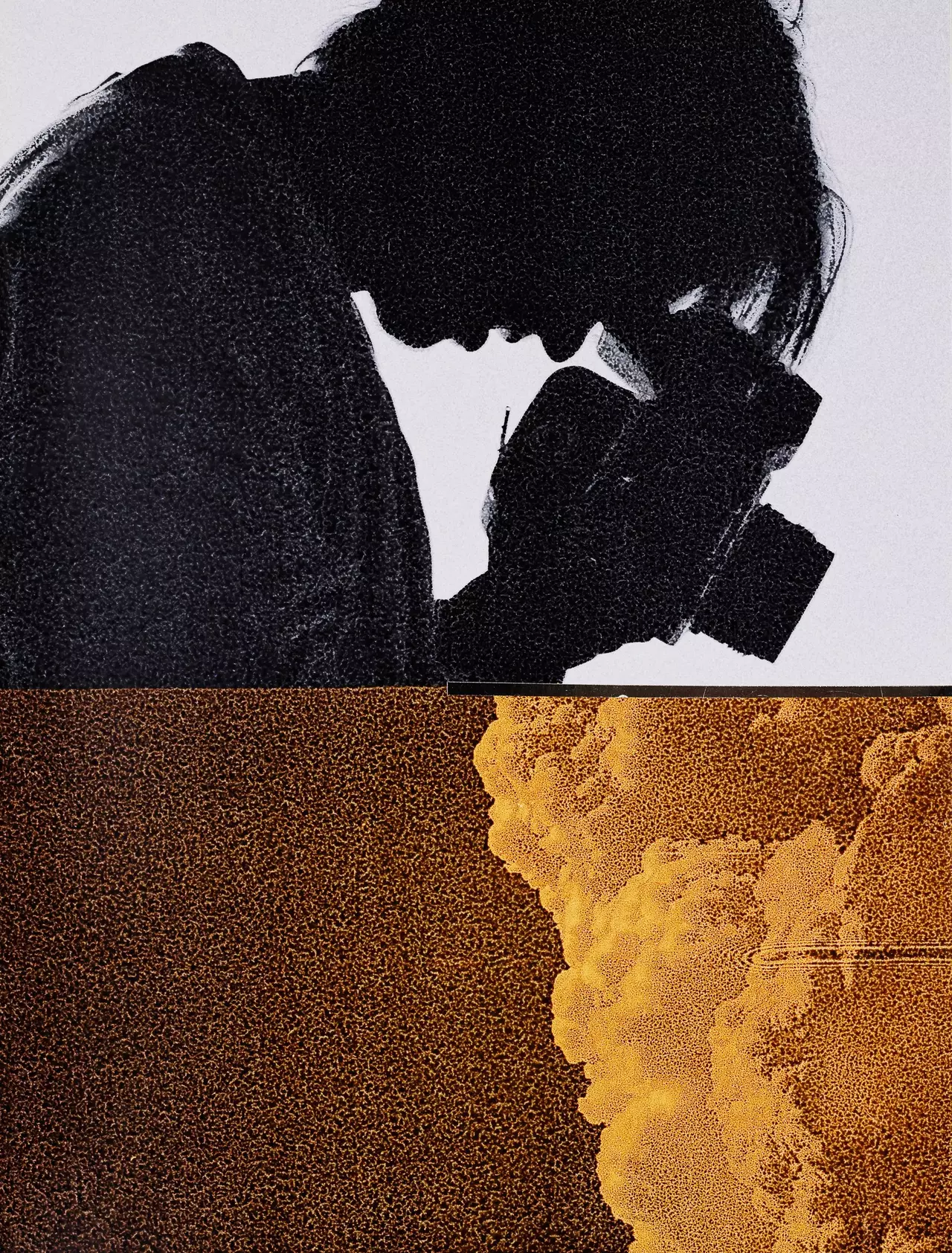 Fresh as if just out of the shower, a photographer holding a camera, sweat glistening on his face.